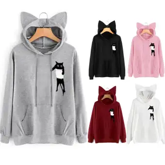 Korean Sweatshirt For Women Womens Long Sleeve Sweatshirt Cat Ears Hoodie Printed Causal Tops Blouse Ladies Hoodie Jacket