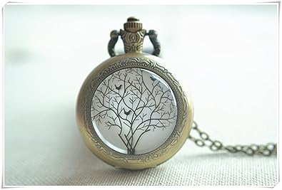 Amazon Com Elf House Tree Pocket Watch Necklace Birds On